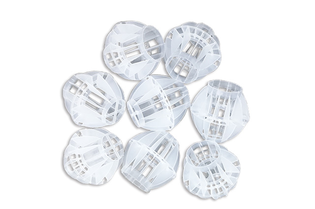 多面空心球中間鏤空結(jié)構(gòu)形成空隙大,不易被阻塞的特性。這種結(jié)構(gòu)在空氣洗滌、廢氣吸收、灰塵過(guò)濾等廢氣處理工程方面應(yīng)用,具有處理風(fēng)量大、阻力小的特點(diǎn)。由于多面空心球的空隙中有較高的滯液量,可使塔內(nèi)液體停留時(shí)間長(zhǎng),從而增加了氣體與液體的接觸面積和接觸時(shí)間,便廢氣得到充分吸收處理。