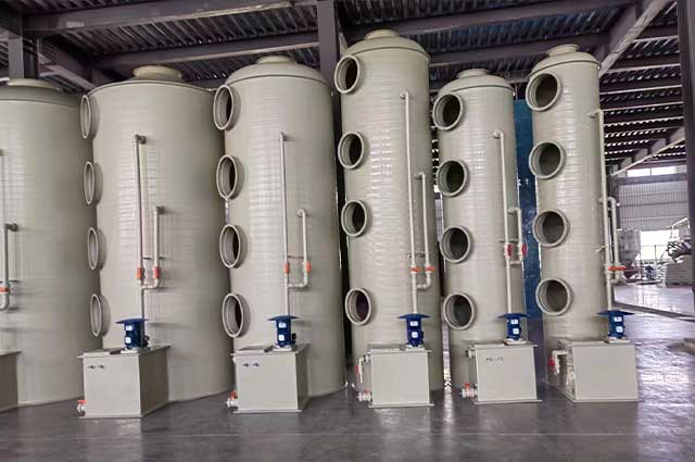 PP噴淋塔也叫做PP洗滌塔、酸霧凈化塔--酸堿廢氣處理設備;噴淋塔工作原理:廢氣由風管引入凈化塔,經(jīng)過填料層,廢氣與吸收液進行氣液兩相充分接觸吸收中和反應,廢氣經(jīng)過凈化后,再經(jīng)除霧板脫水除霧后由風機排入大氣。廢氣達到地方排放標準的排放要求。
