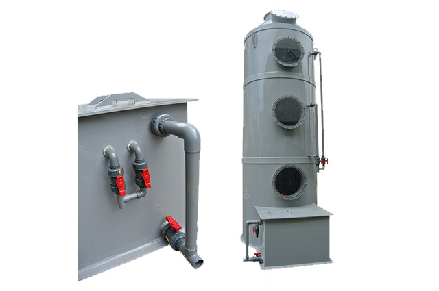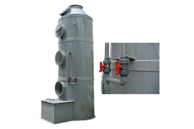 PPs洗滌塔結(jié)構(gòu):洗滌塔由除霧層、噴淋層、填料層、風(fēng)機(jī)、風(fēng)管、塔體、供水箱、供水泵等部分組成。洗滌塔系統(tǒng)的風(fēng)機(jī)組將收集到的廢氣吸入酸霧PPs阻燃洗滌塔內(nèi),流經(jīng)填料層段(氣/液接觸反應(yīng)介質(zhì)),讓廢氣與填充物表面流動(dòng)的藥液(洗滌液)充分接觸,以吸附廢氣中所含的酸性或堿性污物,廢氣經(jīng)過(guò)洗滌后,達(dá)標(biāo)排放。